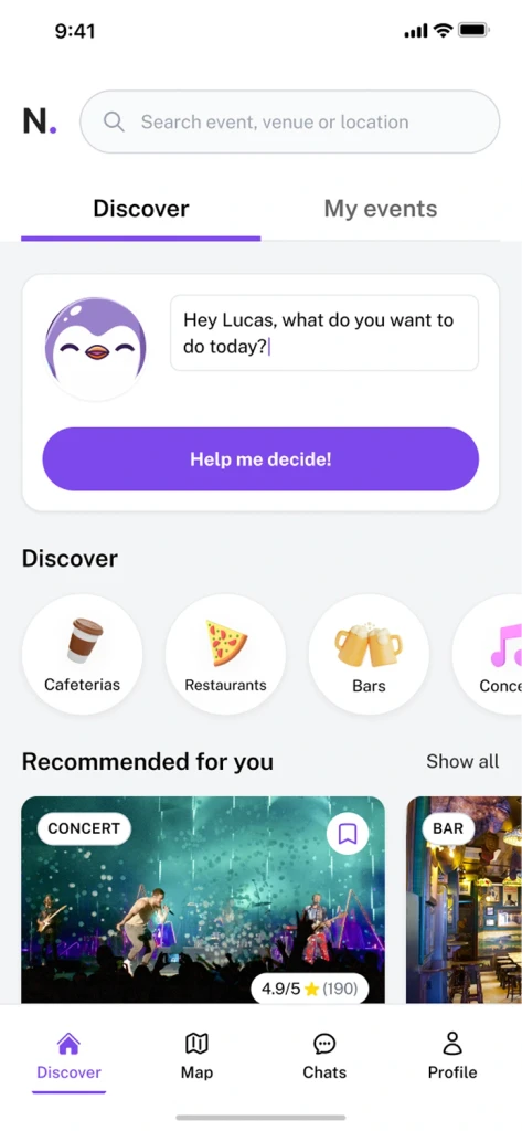 Polo is your smart companion in Nite. The more you explore, the better Polo gets at suggesting awesome plans you’ll love. Stuck on what to do? Just ask Polo!
